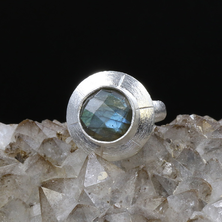 Bijoux créé par INTIMAPU MILENKO – Bague en argent 925, Labradorite facettée sertie.